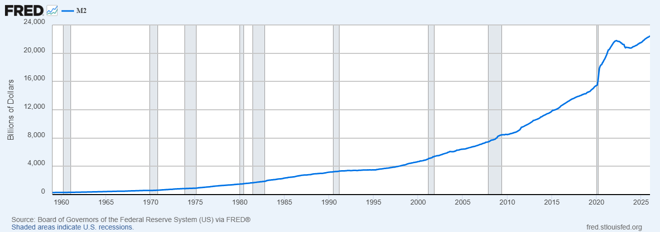 If you’re new to my rants and don’t know what M2 money is, here’s the quick version. M2 is the money you can get your hands on fast — cash, checking accounts, savings accounts, and short-term deposits.